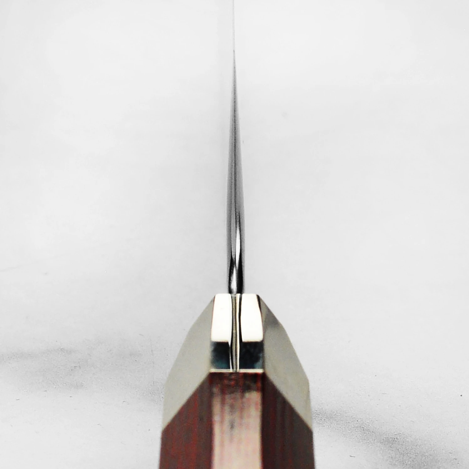 - Red Pakkawood octagonal handle with Japanese mosaic accent rivet