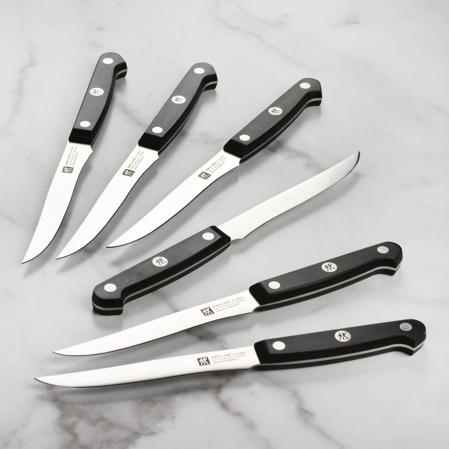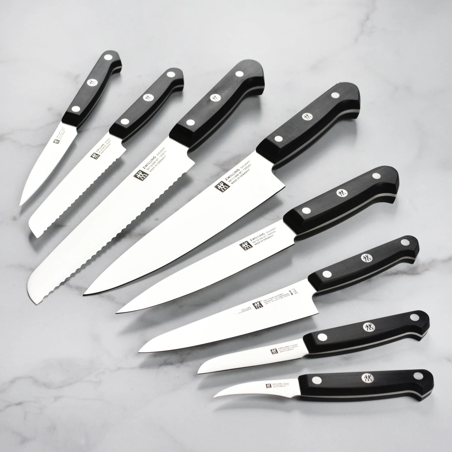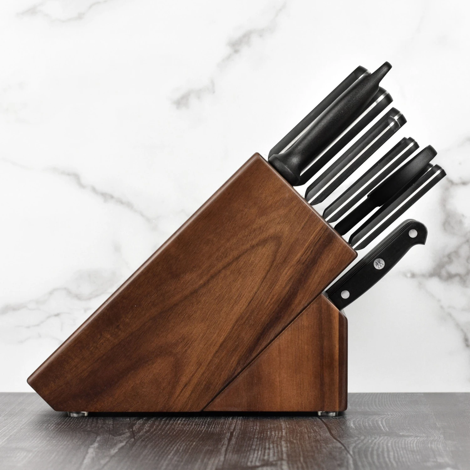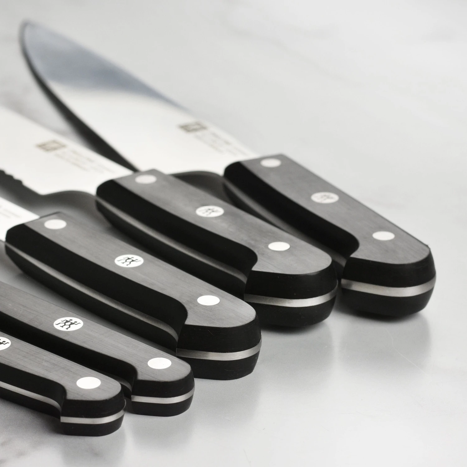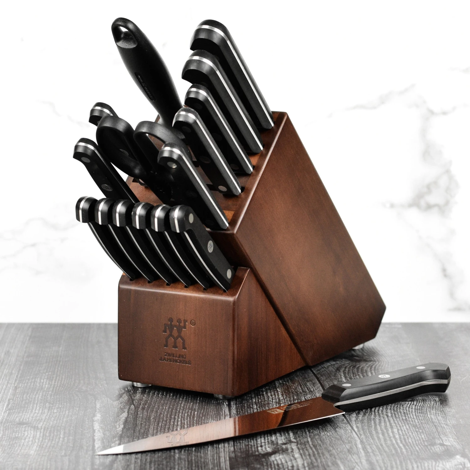- Traditional three-riveted handle with a full tang provides maximum comfort and stability while cutting; center rivet is laser inscribed with Zwilling logo